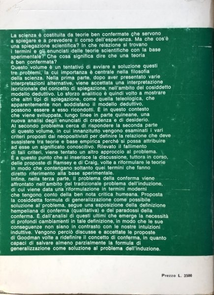 Soggetti: Filosofia, Scienze, Metodo scientifico, Teorie, Problemi, Termini, Esperienza, Generalizzazione, Spiegazione, Eventi psicologici, Teleologia, Storia, Criteri, Deduzione, Modello deduttivo, Significanza, Falsificabilità, Verifica, Traducibilità, Empirismo, Hume, Forma craigiana, Sintattica, Ramseyana, Conferma, Enunciati, Hempel, Paradossi, Critica humeana, Comportamento, Esempi positivi, Goodman, Induzione, Pragmatismo, Finzionalismo eliminativo, Interpretazione, Educazione, Pedagogia, Linguaggio, Teoria, Scienza, Libri vintage, Explanation, Significance, Confirmation, Contemporary philosophy, Education, Anatomie de la science: etude philosophique de l'explication et de la confirmation, Neopositivismo, Craig, Ramsey, Chomsky, Bibliografia, Philosophy, Sciences, Scientific Method, Theories, Problems, Terms, Experience, Generalization, Explanation, Psychological Events, Teleology, History, Criteria, Deduction, Deduction Model, Significance, Falsifiability, Verification, Traducibility, Empiricism, Craigian Form, Syntactic, Confirmation, Envoys, Paradoxes, Criticism, Behavior, Positive Examples, Induction, Pragmatism, Eliminational, Interpretation, Education, Pedagogy, Language, Theory, Science, Vintage Books, Neo-Posivism, Bibliography