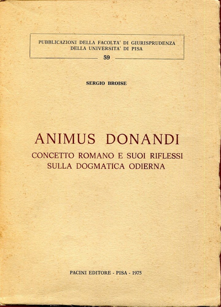 Animus donandi : concetto romano e suoi riflessi sulla dogmatica odierna 1: Parte generale | Libri antichi e moderni | Broise, Sergio, ,Broise, Sergio