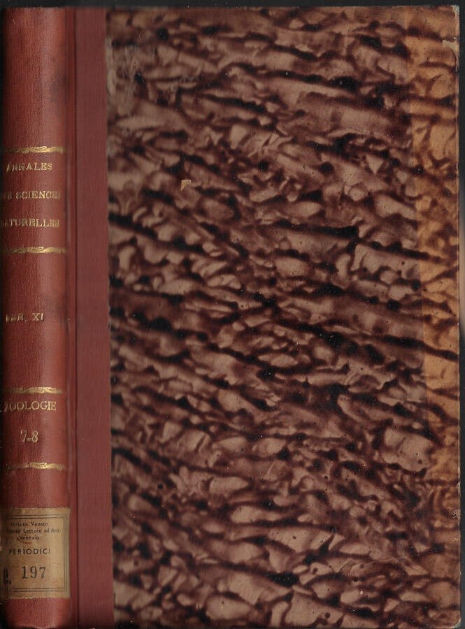Volume successivamente rilegato raccogliente i tomi VII e VIII serie 11° degli "Annales des sciences naturelles zoologie et biologie animale" anni 1945-1946; lingua francese. Il volume potrebbe contenere timbri ed etichette dell'Istituto Veneto, regolarmente acquisito dalla nostra libreria. Coperta rigida ed ingiallita dal tempo in mezza tela presentante segni di usura ai margini con lievi abrasioni ed etichetta precedente alla cuffia inferiore del dorso. Pagine fruibili anche se leggermente ingiallite dal tempo. Tavole illustrate in nero fuori testo. Numerazione delle pagine per tomo 143, 247. Numero pagine complessive 390.