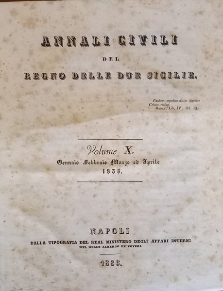 Annali Civili del Regno delle Due Sicilie. Fascicoli XIX e XX. Gennaio - Febbraio e Marzo - Aprile 1836. Napoli, 1836. | Libri antichi e moderni |