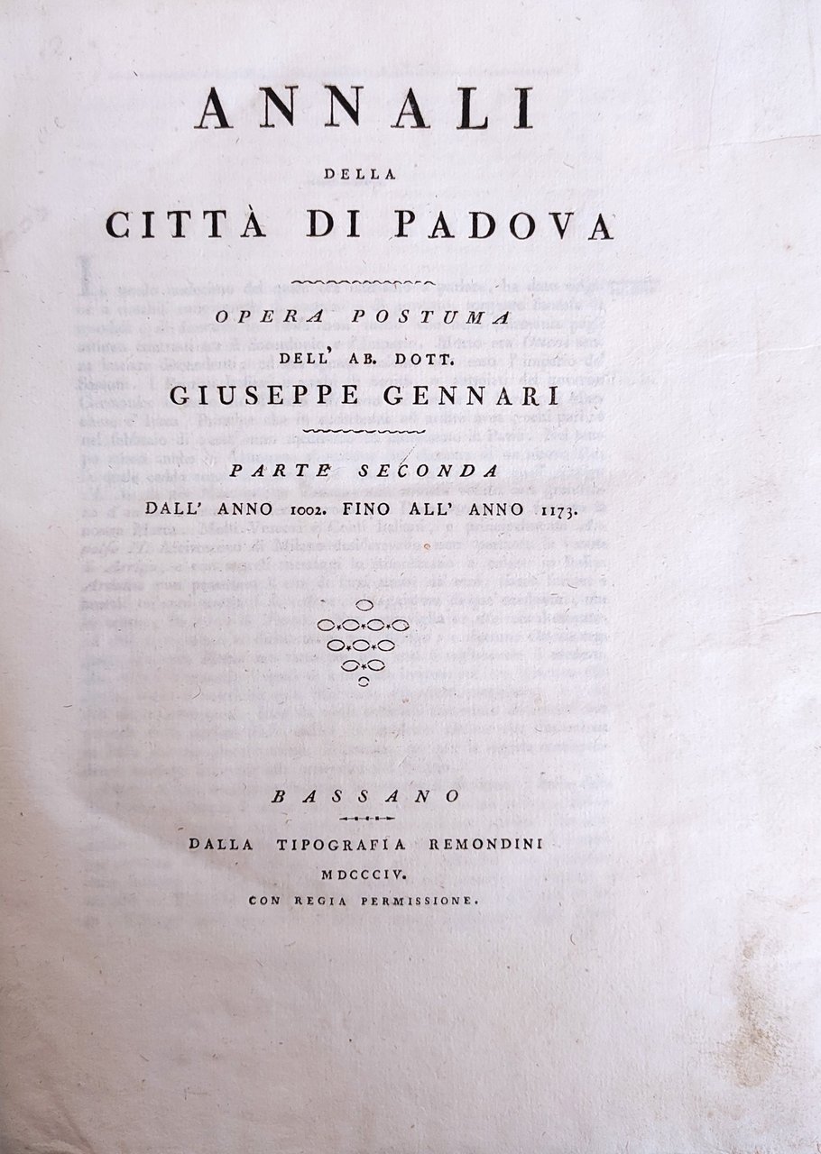 ANNALI DELLA CITTÀ DI PADOVA | Libri antichi e moderni | GENNARI GIUSEPPE, ,GENNARI GIUSEPPE