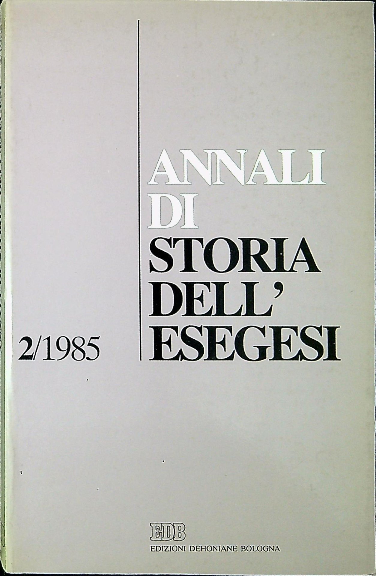 AA.VV. Annali di storia dell'esegesi 2/1985. Bologna, EDB 1985, 22 cm. 299 p. (49178)