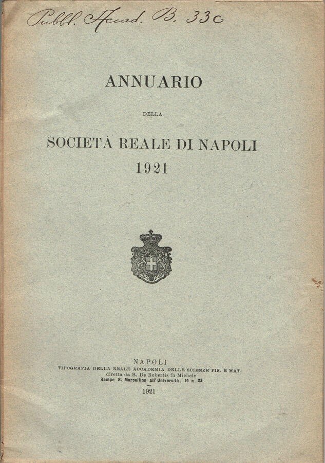 Tipografia della Reale Accademia delle Scienze Fis. e Mat. - diretta da B. de Rubertis fu Michele - Napoli, 1921
