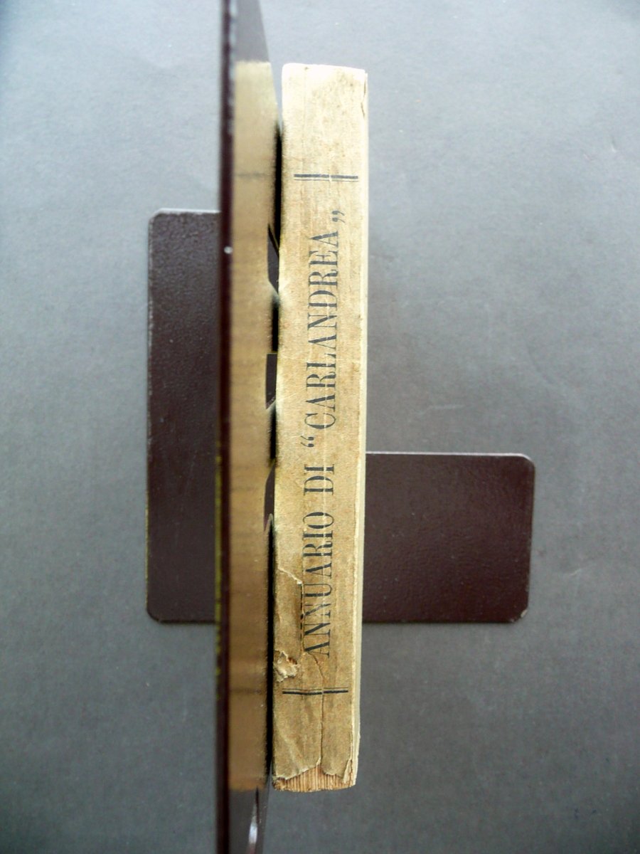 Annuario di Carlandrea" Vade - mecum per le corse in Italia 1894 Edizione d'inverno Pubblicato dal giornale "La Rivista delle Corse", Milano 1894, cm 14,5x10,5, pp. CXX-280; brossura ed. Condizioni di conservazione Esemplare ben conservato con tracce d'uso e alcune piccole lievi bruniture; brossure con pochissime trascurabili mancanze e strappetti ai margini; angoli della brossura post. rispettivamente con un paio di minime mancanze e due leggere tracce di pieghette; parte inf. del dorso con uno strappetto di alcuni cm restaurato per mezzo d'incollatura (esemplare compatto) e una minima mancanza alla cuffia inf. Pagine con lievi accenni d'ingiallimento dovuti all'età e al tipo di carta. SETT124.L12087 N P "