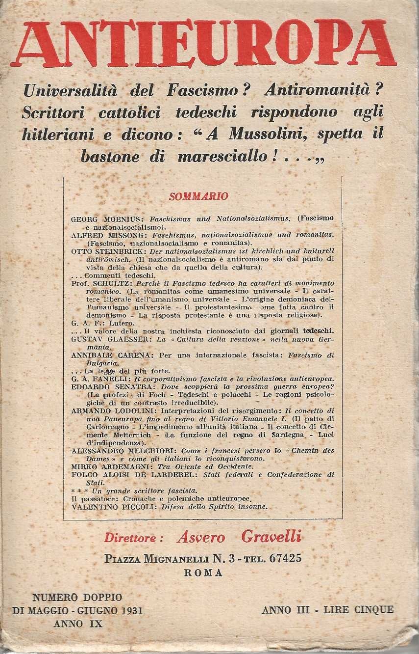 Antieuropa maggio - giugno 1931 | Libri antichi e moderni | Autori Vari