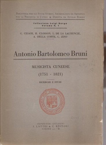 Antonio Bartolomeo Bruni musicista cuneese 1751 1821 Ricerche e studi | Libri antichi e moderni | Cesari G Closson H E Altri