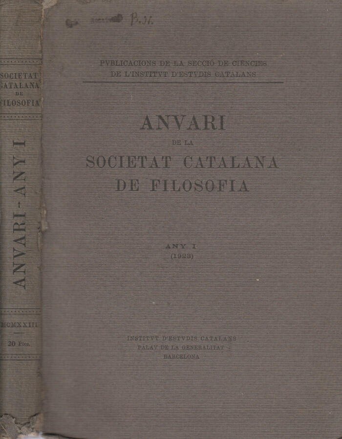 Anuari de la societat catalana de filosofia anno I 1923 | Libri antichi e moderni |