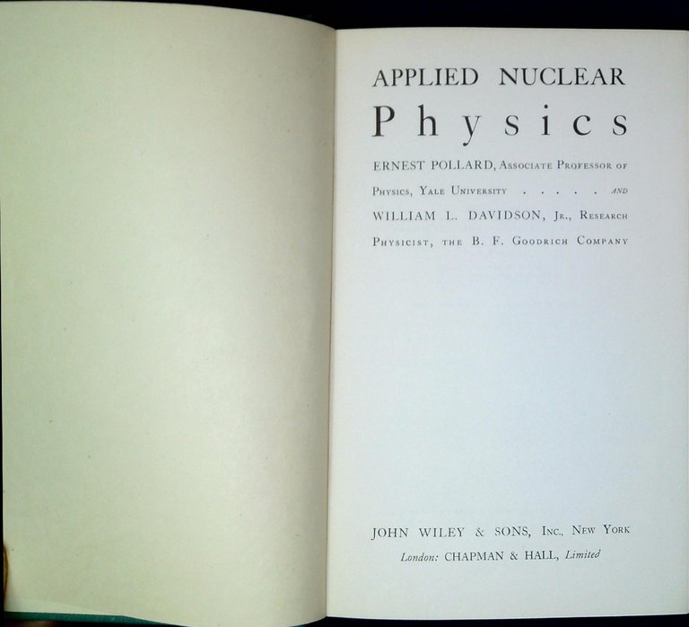 Pollard, Ernest Charles; Davidson, William L. Applied nuclear physics. New York, Wiley & Sons ; London : Chapman 1946, IX, 352 p. : ill. ; 24 cm Nona edizione (48523)