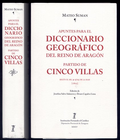 Apuntes para el Diccionario Geográfico del Reino de Aragón. Partido de Cinco Villas. Según el Ms. 9-5723 de la RAH [1802]. Edición de Josefina Salvo Salanova y Álvaro Capalvo Liesa. | Libri antichi e moderni | Suman, Mateo (C.1750-1808).