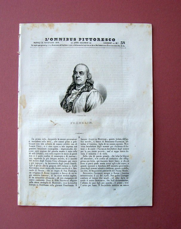 Napoli 28 novembre 1839 Anno Secondo N. 38