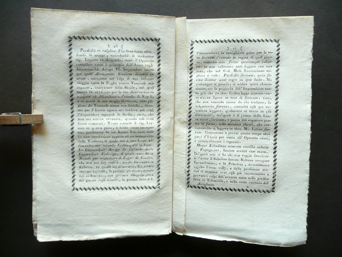 Arrigo Settimello, Arrighetto ovvero Trattato contro all'avversità della fortuna di Arrigo Settimello Edizione eseguita sul testo del 1730 Per Giovanni Silvestri, Milano 1815; cm 16,5x10,5; pp. 136; brossura ed. Condizioni di conservazione Esemplare molto ben conservato con pochi trascurabili difetti ai margini e agli angoli delle brossure. Interno pressoché ottimi, intonsi. Esemplare molto ben conservato, ancora intonso. SETT136.L13430 N