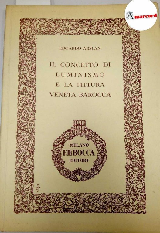 Arslan Edoardo, Il concetto di Luminismo e la pittura veneta barocca, Bocca, 1946. | Libri antichi e moderni | Arslan Edoardo