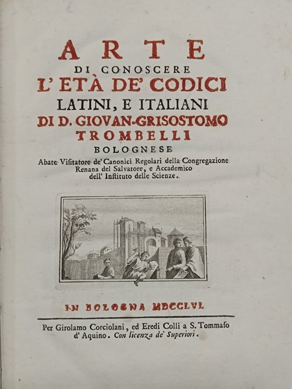 Arte di conoscere l'età de' codici latini, e italiani. | Libri antichi e moderni | Trombelli Giovanni Crisostomo.