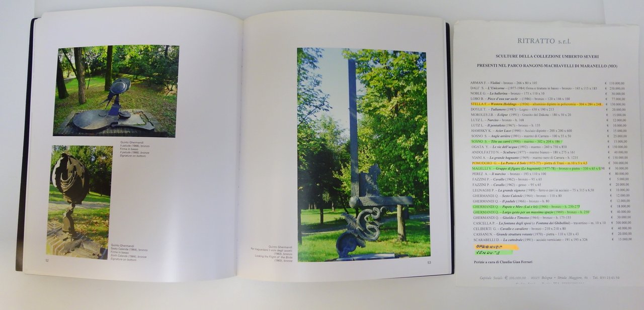 Comune di Maranello, Maranello, 2007, cm 24x28, pp. 95, cartoncino ed. ill. a colori, con numerose ill. fotografiche a colori, accluso elenco opere vendute e opzionate