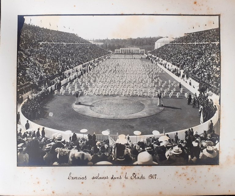 Athene fotografia originale Stadio Stadio Panathinaiko esercizi degli Scolari 1907