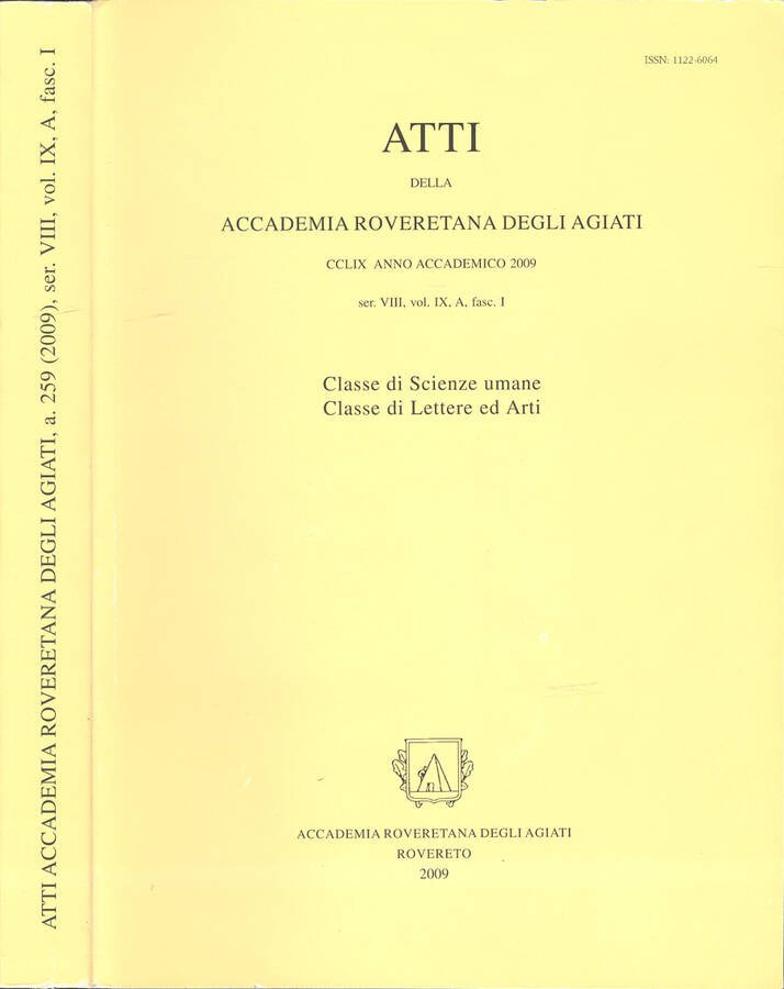 Atti della Accademia Roveretana degli Agiati - Anno Accademico 2009 | Libri antichi e moderni |
