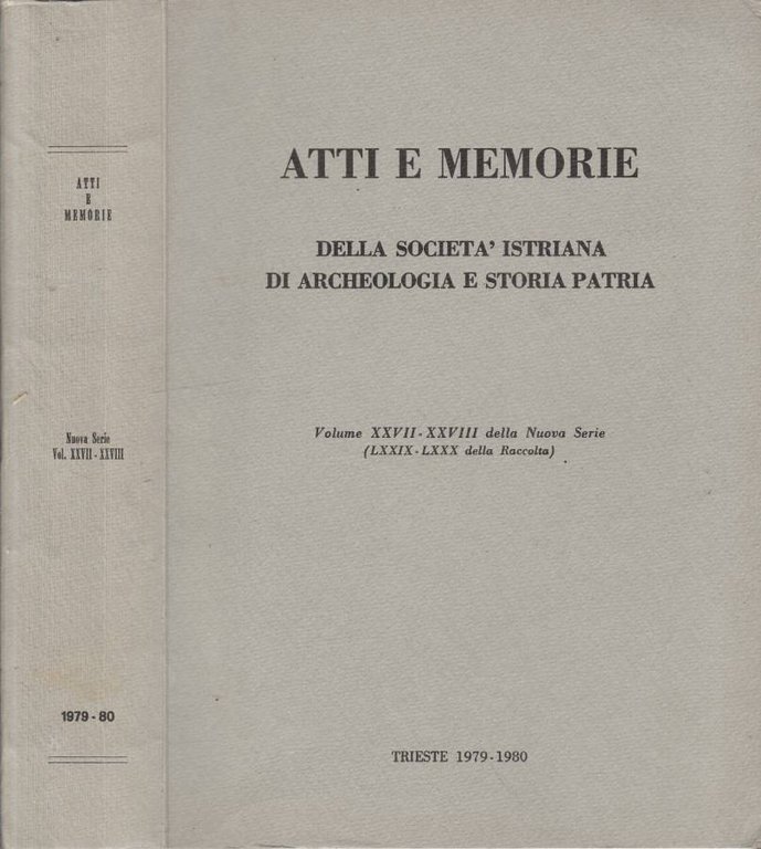 Atti e memorie della Società Istriana di Archeologia e Storia Patria vol XXVII-XXVIII nuova serie (LXXIX-LXXX della Raccolta) 1979-1980