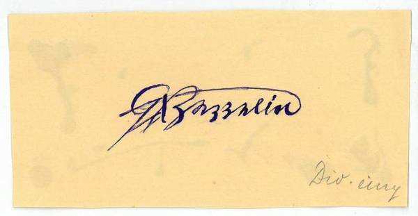1 S. Qu.-12mo. In lila Tinte nachgezogene Bleistiftspur der Unterschrift des berühmten Luftschiffkonstrukteurs, augenscheinliches Falsifikat. Verso Spuren alter Montage.