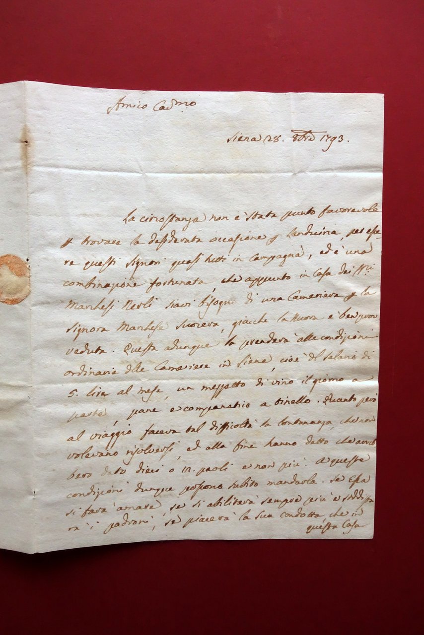 Autografo Domenico Battini Lettera Medico Siena Assunzione di Cameriera 1793 | Libri antichi e moderni |