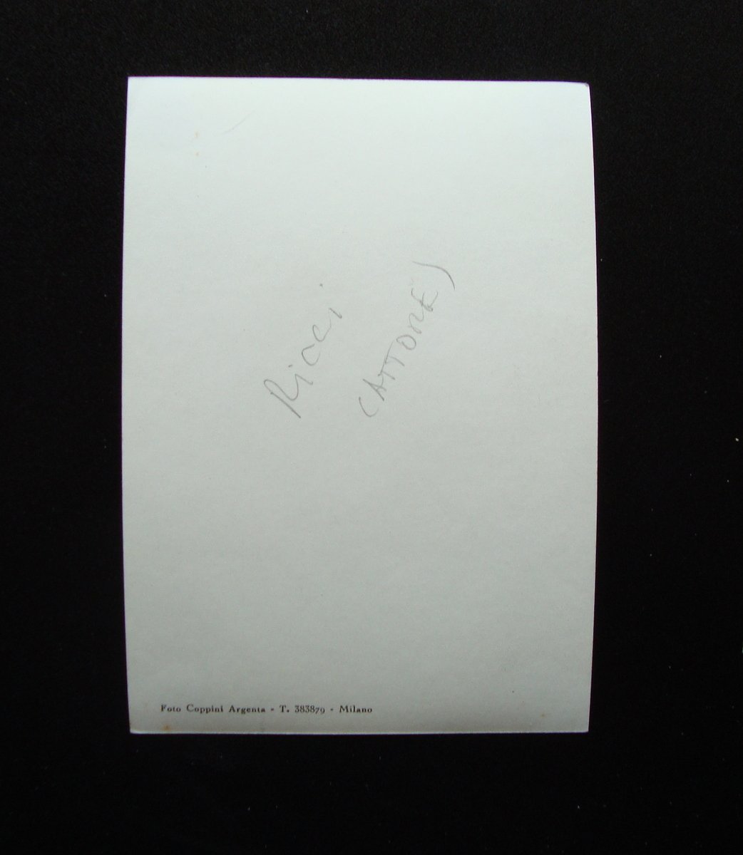 Fotografia autografa, Renzo Ricci Fotografia originale con dedica e firma autografe Foto Coppini, Argenta, s.d., fotografia originale in b/n con dedica e firma autografe. Cm 15x10,5. Condizioni di conservazione: Esemplare in buone condizioni con leggere tracce d'uso. SC03.D4836 BLU