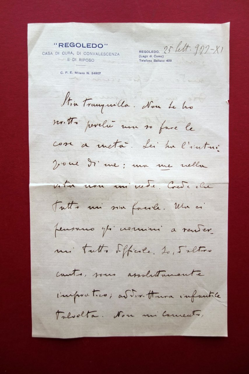 Autografo Rosso di San Secondo Lettera Regoledo Casa di Cura Milano 1933 | Libri antichi e moderni |
