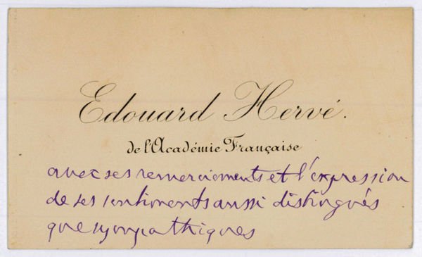 Autograph visiting card. | Libri antichi e moderni | Hervé, Edouard, French Journalist, Historian, And Politician (18, 35-1899).