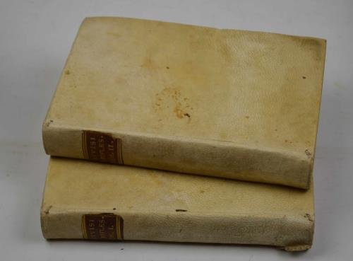 Due volumi di cm. 17, pp. (20) 446 (2); (4) 468. Solida legatura coeva in piena pergamena rigida con titoli in oro su tasselli ai dorsi. Esemplare genuino e ben conservato.