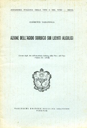 Azione dell'acido sorbico sui lieviti alcolici. Estratto dagli Atti dell'Accademia Italiana della Vite e del Vino volume IX | Libri antichi e moderni | Tarantola Clemente