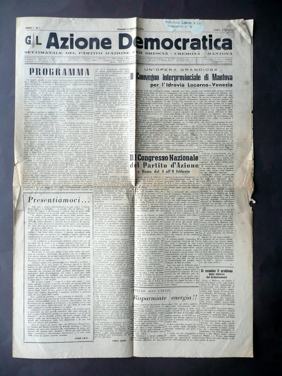 Azione Democratica Partito d'Azione Brescia Cremona Mantova Anno 1 N. 1 1946 | Libri antichi e moderni |