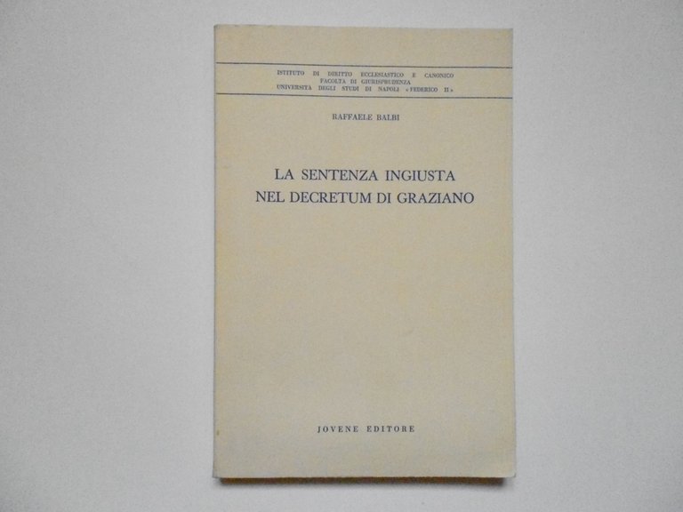 Balbi Raffaele La Sentenza Ingiusta Nel Decretum di Graziano Jovene Editore 1990 | Libri antichi e moderni |