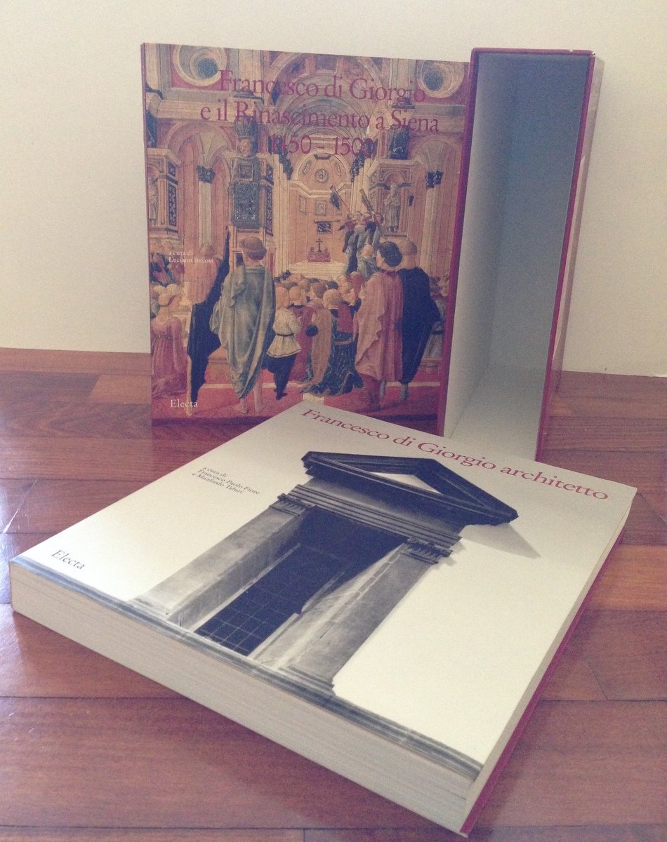 BELLOSI LUCIANO, FIORE FRANCESCO PAOLO, TAFURI MANFREDO (a cura di), FRANCESCO DI GIORGIO FRANCESCO DI GIORGIO ARCHITETTO (primo volume) FRANCESCO DI GIORGIO E IL RINASCIMENTO A SIENA 1450-1500 (secondo volume) CATALOGHI MOSTRE SIENA APRILE-LUGLIO 1993 2 Volumi MILANO, ELECTA, 1993, 2 voll. in 4°, I° vol. pp. 555, II° vol. pp. 426, ill. a col. e b/n, br. ed. ill. con bandelle, cofanetto rigido ed. ill. Condizioni di conservazione Esemplare in buono stato con leggere tracce d'uso, il cofanetto con qualche piccola abrasione e qualche piccolo graffio, interni molto buoni . MM0236/A5-234