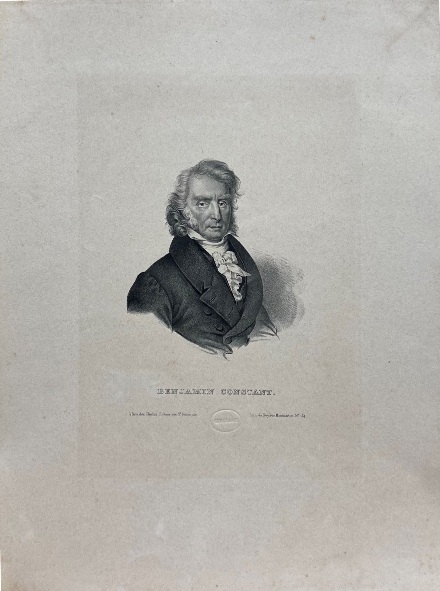 Benjamin Constant (1767 - 1830) fu uno scrittore, politico ed intellettuale francese.  litografia cm. 27,5 x 37 Buono (Good) Buon es..