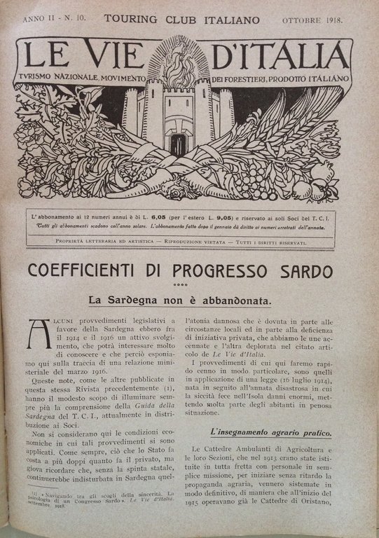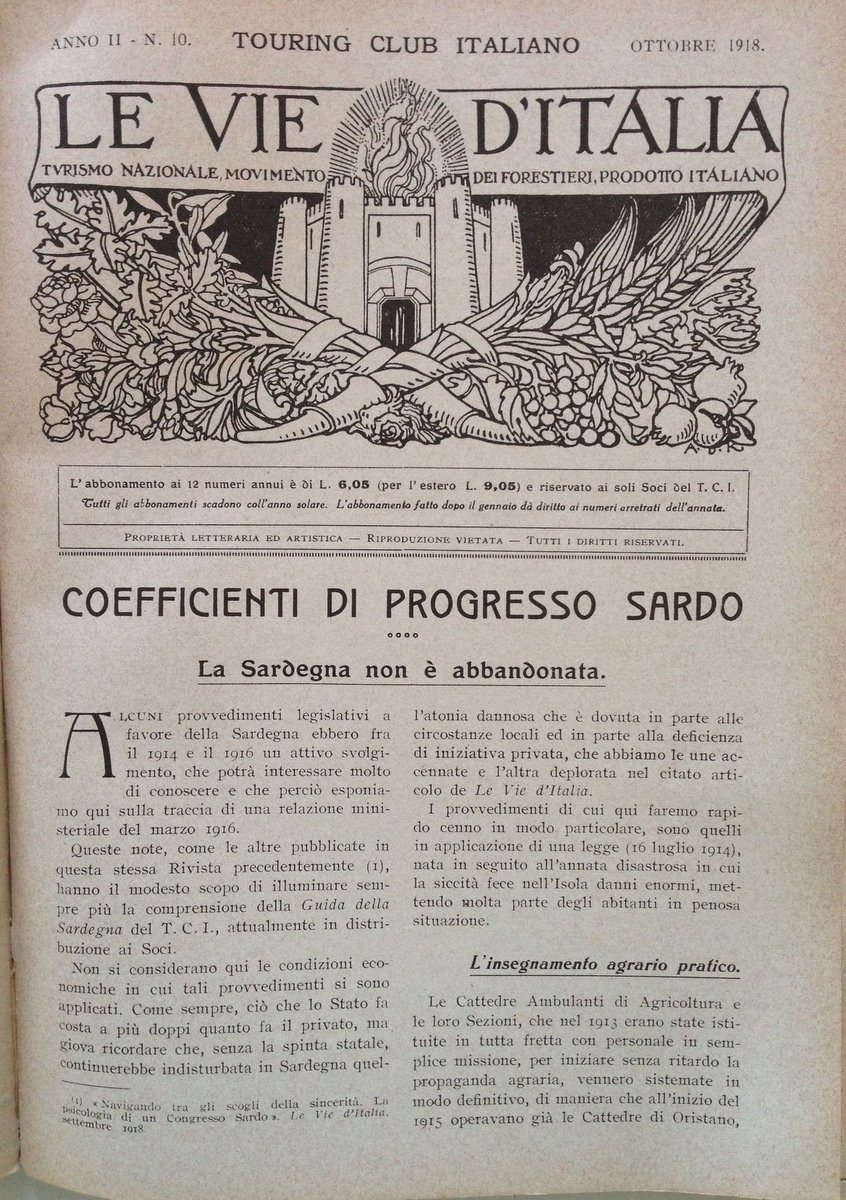 Bertarelli La Sardegna Non Ë Abbandonata Vie d'Italia Touring Ottobre 1918