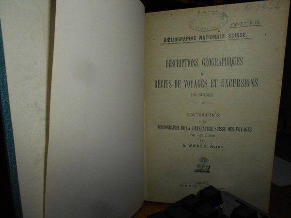 Bibliographie de la Littérature Suisse des Voyages. Descriptions Géographiques Récits de Voyages et Excursions en Suisse. Fascicule III. | Libri antichi e moderni | A. Waeber