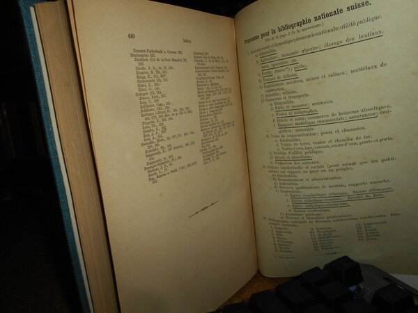 A. WAEBER. Berne, K.J. Wyss, 1899. Bibliographie de la Littérature Suisse des Voyages. Descriptions Géographiques Récits de Voyages et Excursions en Suisse. Fascicule III. In-8* piccolo, tela bleu con titolo in oro entro tassello al dorso, copertine originali conservate. xxii, 440 pp. Ottimo esemplare il legatura artigianale anni '60 con le brossure originali conservate. Uff. B - I - 7