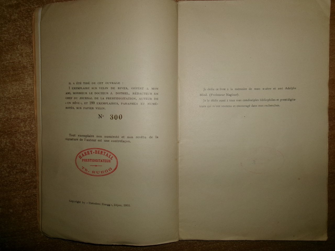 Bibliographie de la Prestidigitation Française Ancienne et Moderne. RUEGG 1931