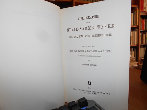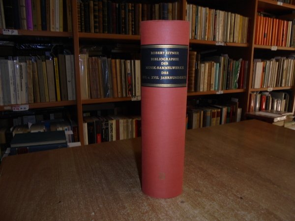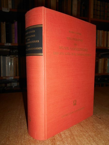 Robert Eitner. Hildesheim, Georg Olms, 1963. BIBLIOGRAPHIE DER MUSIK-SAMMELWERKE DES XVI. UND XVII. JAHRHUNDERTS. In-8°, tela edit. con titoli in oro sul dorso e sul piano. ix, 964 pp. Perfetto esemplare. Uff. E - V - 1