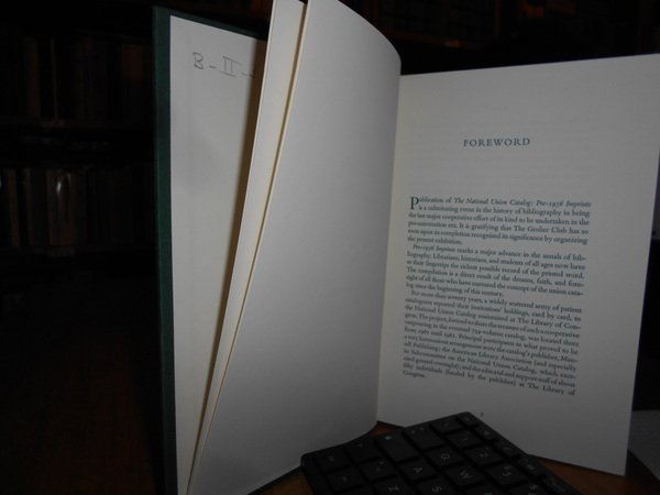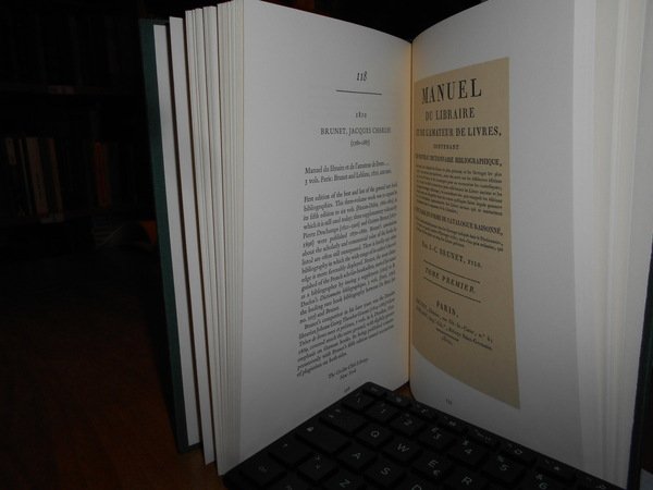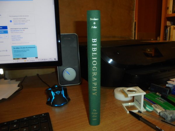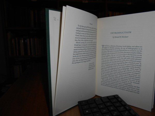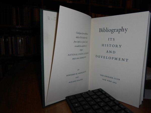 Breslauer, Bernard H.; Folter, Roland. New York, The Grolier Club, 1984. Bibliography ITS History and DEVELOPMENT. In-8°, tela verde edit. con titolo in oro al dorso e impressione in oro sul piano anteriore. 223 pp. con tavole in bicromia n.t. Prima edizione in tiratura limitata di 600 copie. Come nuovo. Uff. B - II - 3