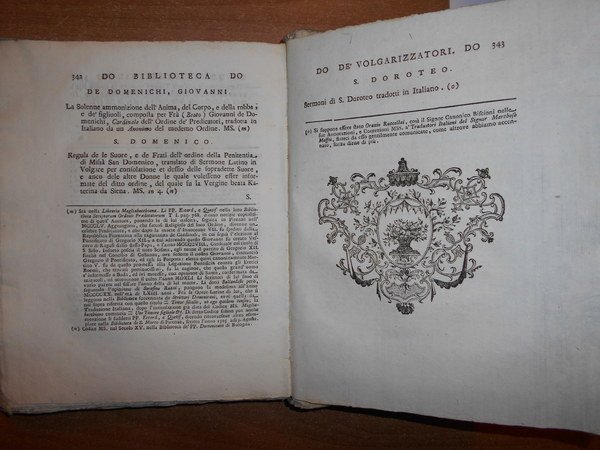 BIBLIOTECA degli Volgarizzatori, o sia notizia dall' Opere volgarizzate d' Autori, che scrissero in lingue morte prima del secolo XV. Opera postuma