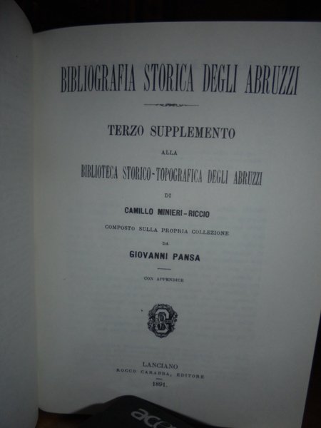 BIBLIOTECA Storico-Topografica degli ABRUZZI composta sulla propria collezione. | Libri antichi e moderni | Camillo Minieri Riccio