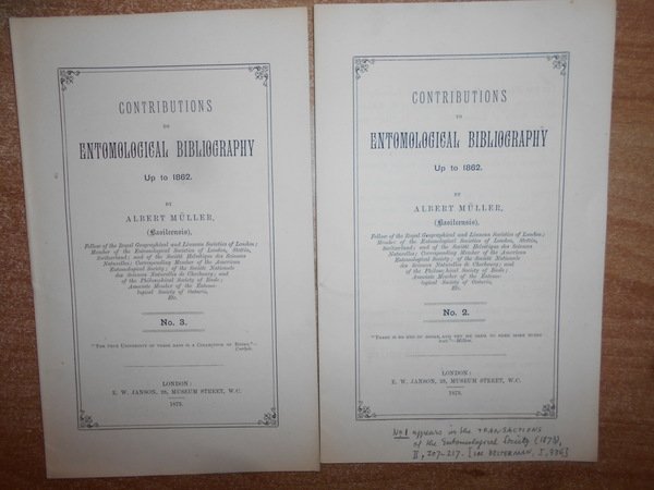 BIBLIOTHECA ENTOMOLOGICA. Die Litteratur uber das ganze gebiet der entomologie bis zum Jahre 1862