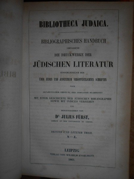 BIBLIOTHECA JUDAICA | Libri antichi e moderni | By Julius Fürst