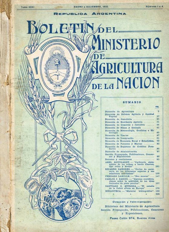 Boletin del Ministerio de Agricultura de la Nacion n.1/4, 1932 | Libri antichi e moderni | Republica Argentina
