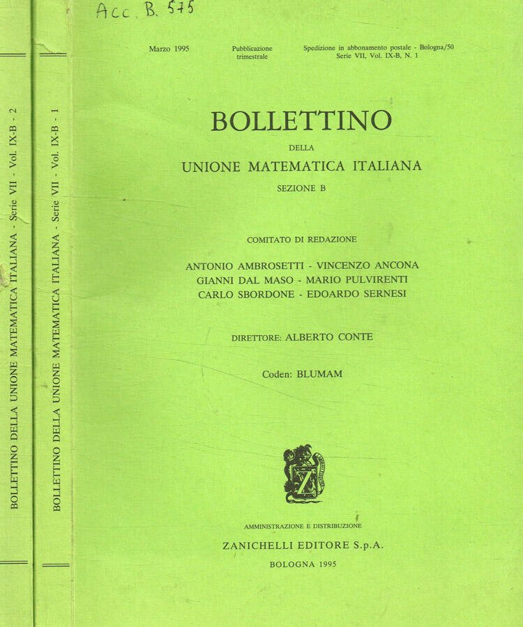 Bollettino della unione matematica italiana sezione B.Vol.IX-B, n.1, 2, anno 1995 | Libri antichi e moderni | Alberto Conte, Diretta Da