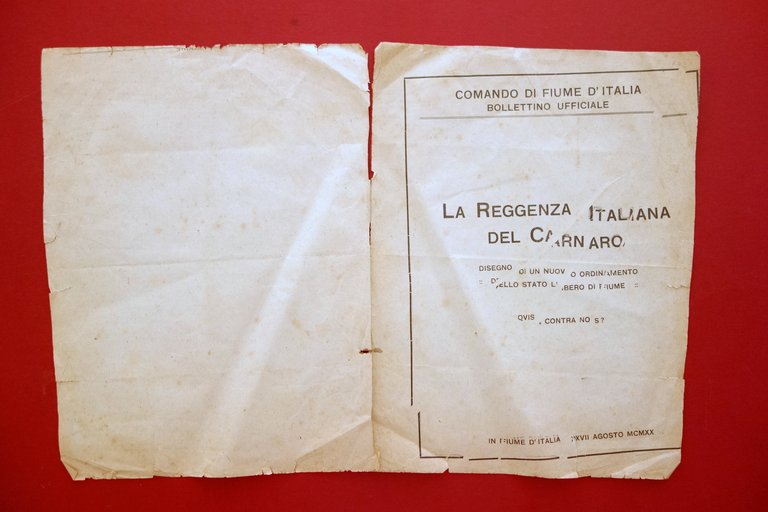 Bollettino Ufficiale Comando Fiume Reggenza Italiana del Carnaro 27/8/1920 Raro | Libri antichi e moderni |