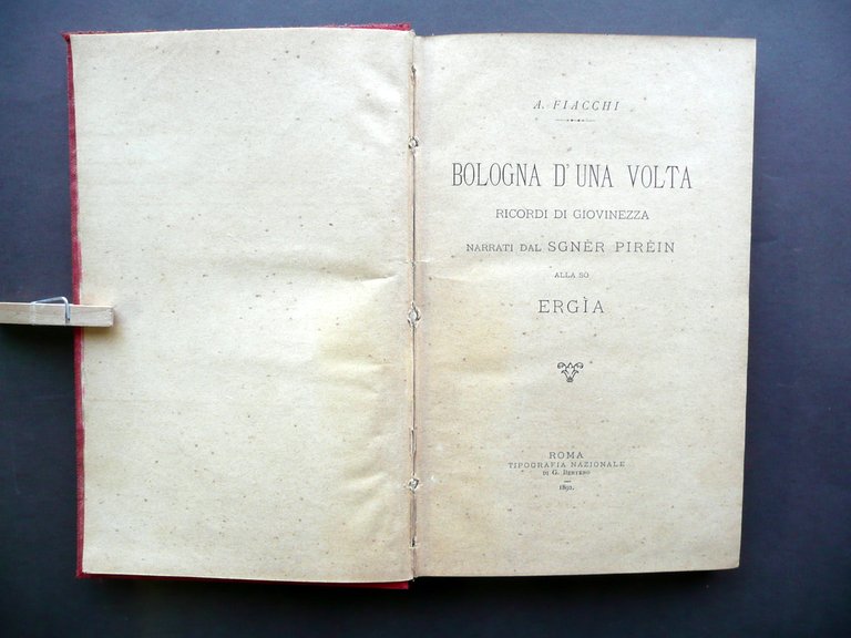 Bologna d'una Volta Sgner Pirein A. Fiacchi Tip. Nazionale Roma 1892 Originale | Libri antichi e moderni |