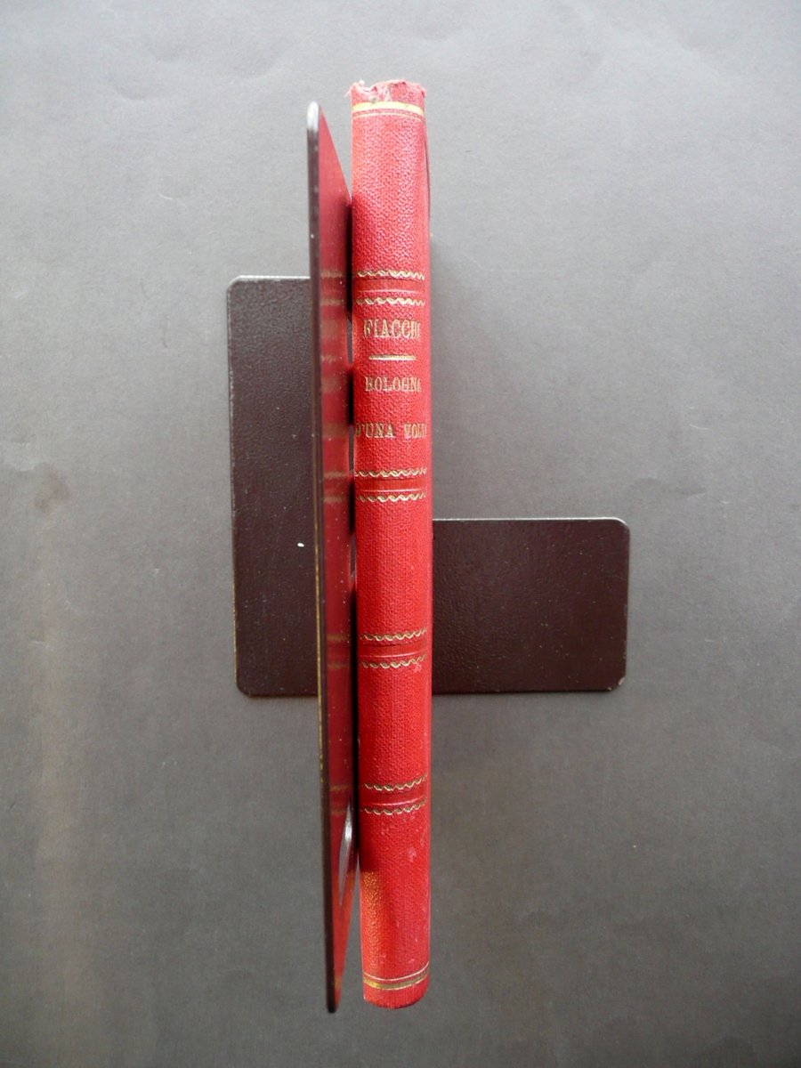 A. Fiacchi, Bologna d'una volta Ricordi di giovinezza narrati dal Sgnèr Pirèin alla sò ergìa Tipografia Nazionale di G. Bertero, Roma 1892, cm 19x12,5, pp. 216 con qualche ill. in b/n nel t.; legatura d'epoca in tutto cartonato telato con titolo e fregi in oro al dorso. Condizioni di conservazione Esemplare in buone condizioni con tracce d'uso, piatti con alcuni lievi aloni e leggerissime tracce di vecchia umidità ai margini est., che interessano in misura lieve anche i risguardi ma non le pagine; margini sup. e angoli con alcune minime / piccole mancanze. Interni buoni con normali lievi ingialliture del tempo e alcune minime bruniture. Edizione originale del 1892. SETT126.L12377 N P