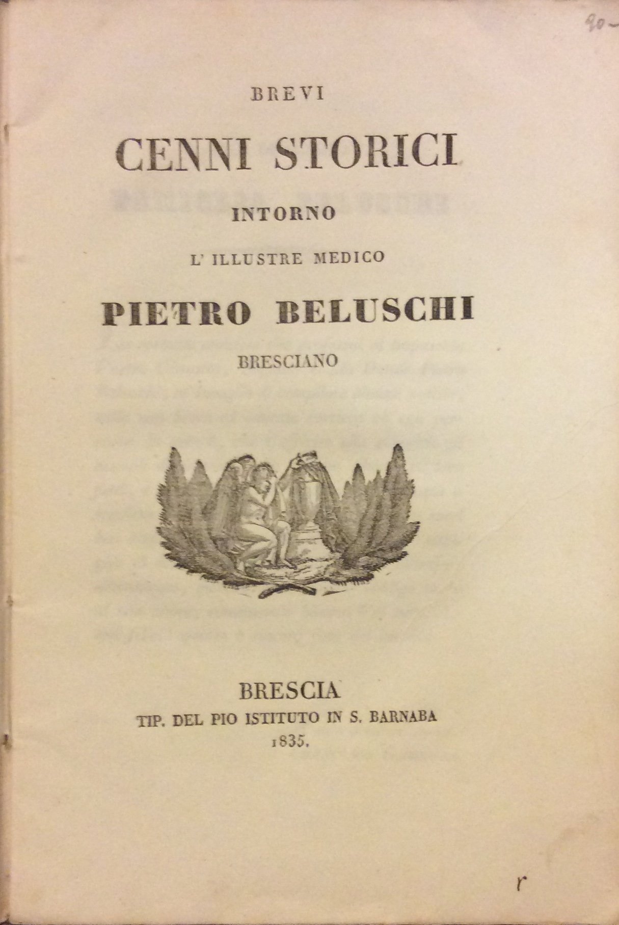 BREVI CENNI STORICI INTORNO L'ILLUSTRE MEDICO PIETRO BELUSCHI BRESCIANO.