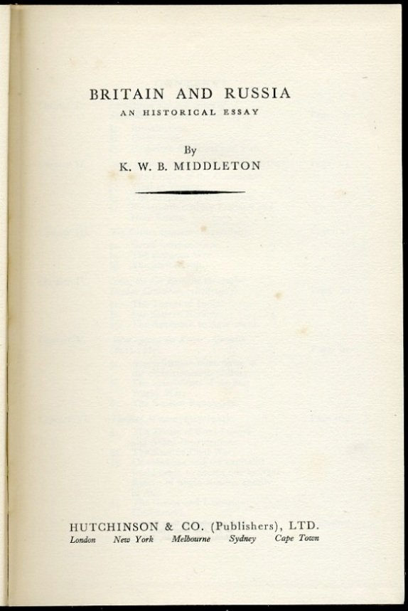 Britain and Russia : An Historical Essay | Libri antichi e moderni | Middleton, K. W. B.