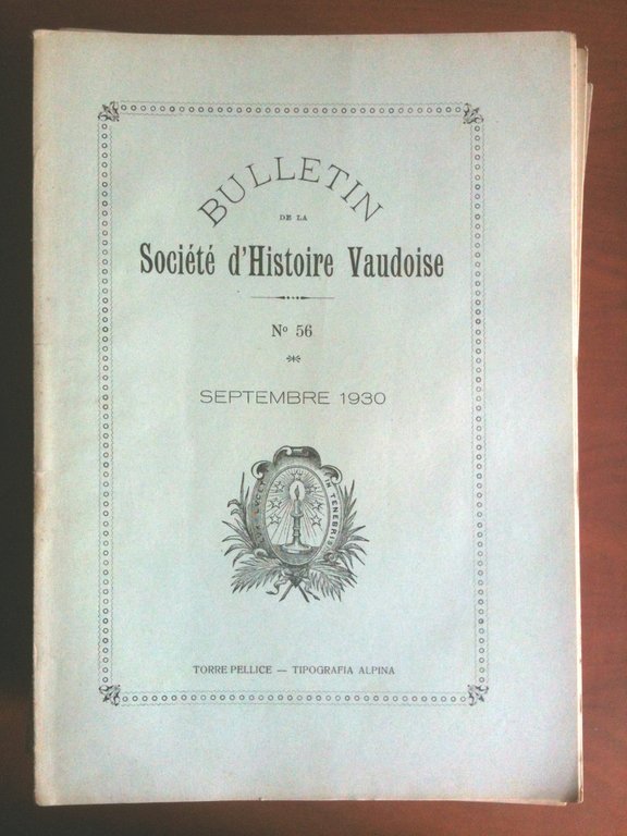 Bulletin de la Société d'Histoire Vaudoise n^ 56 Septembre 1930 (Storia Valdese)